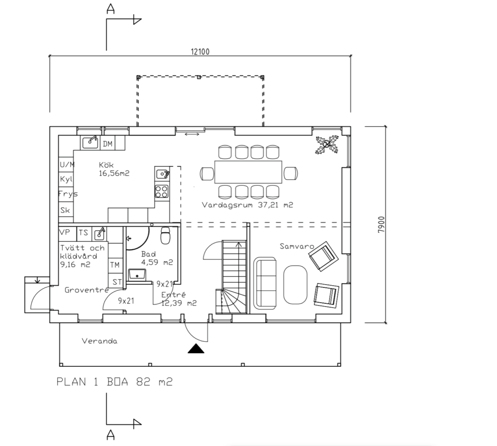 Ekäng är ett enplanshus på 134 m2.